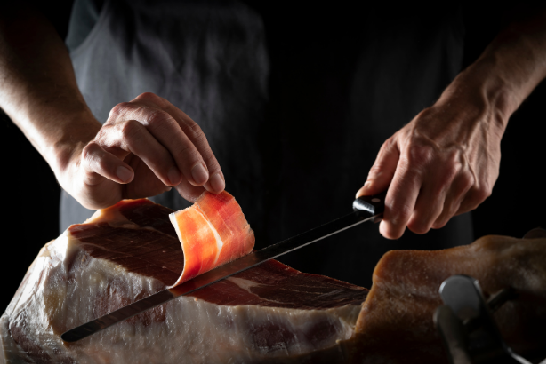 熟練の職人が、世界中の厳選された生ハムを、お客様の前で華麗に切り分けるサービスです。