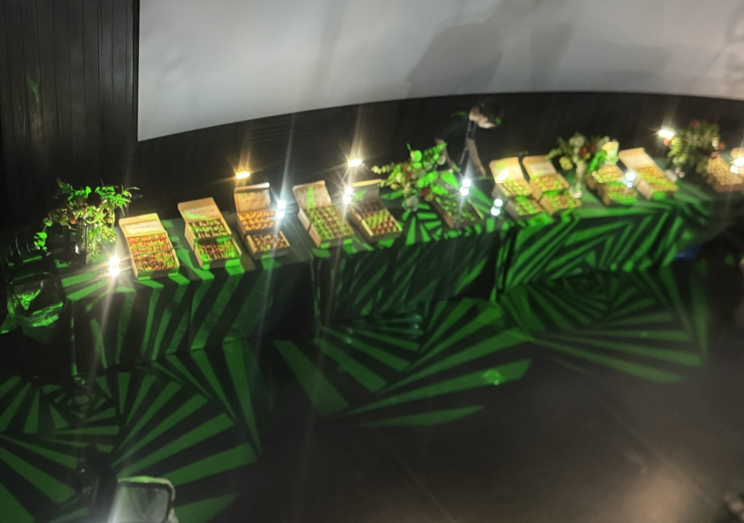 パビリオン内は、薄暗い空間となっているため、お寿司などどのような料理かあわかりづらくなっていました。そのため、料理1つ1つにライトをつけスタッフが英語でご案内もしています💡